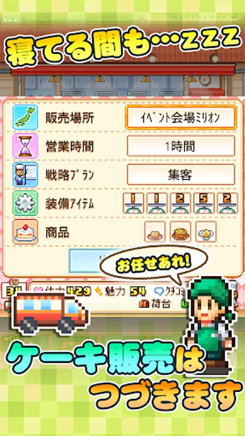Equipped with a communication function that allows friends all over the country to visit the store, and a peddler mode that automatically continues cake sales even while you are sleeping!