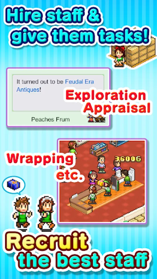 Your field staff are in charge of collecting goods for sale. They'll sometimes come across what looks like real treasure, but you'll have to appraise it first to see what it's actually worth. You may discover some amazing items this way, which will bring fame to your store!