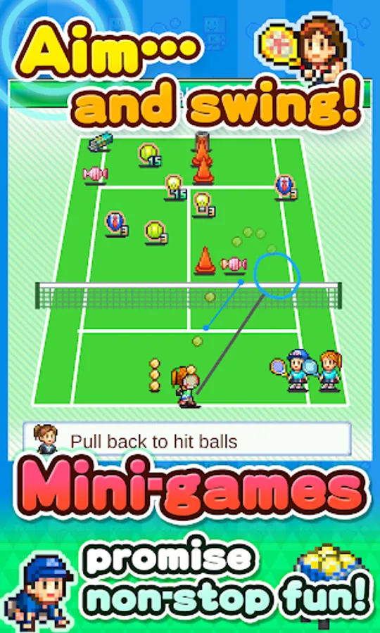Aim for the ace position of tennis club prestige in this simulation! Your leadership decides if players make it to the big time or bust! Customize your training menu to focus on power or technique, molding players as you please for competitions, fame, and snazzy sponsors!