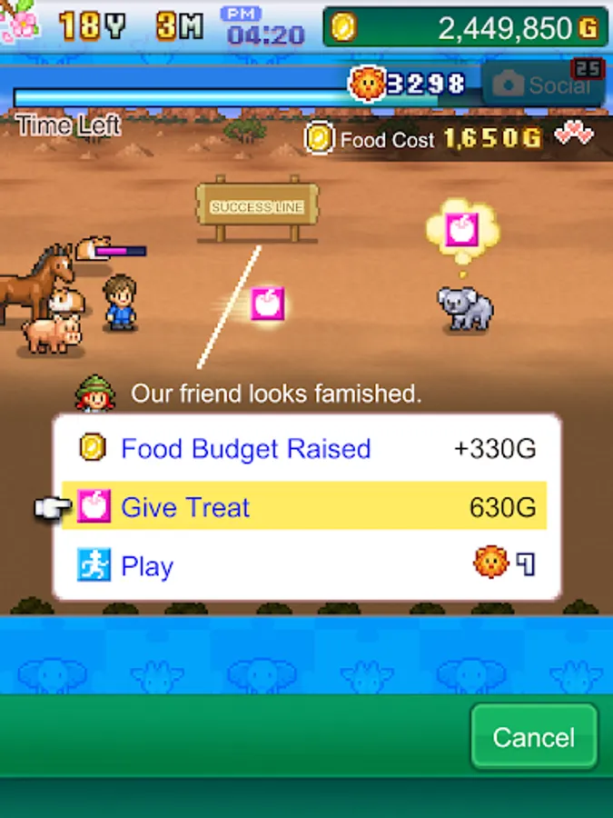 Savor the thrill of opening day. Feed the animals in your burgeoning lineup—even give them the occasional treat to show you care! From apples to acorns, meat, and more, tailor your critters' diet according to their natural habitat. On that note, do the same with the surrounding flora too!