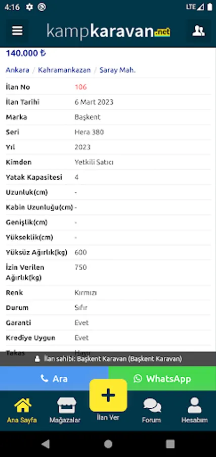 • You can filter thousands of current caravan advertisements according to the criteria you want; you can easily find what you are looking for.