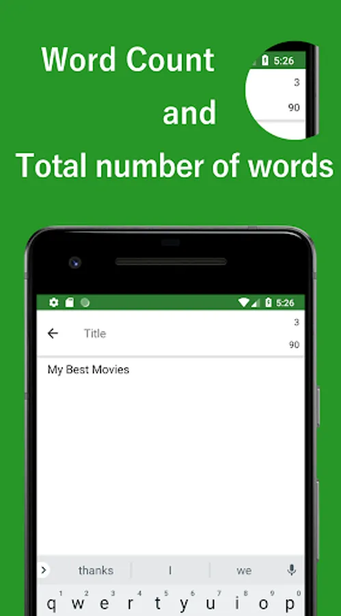 ・ You can check the number of words on the edit screen. It is useful for drafts of papers and novels.