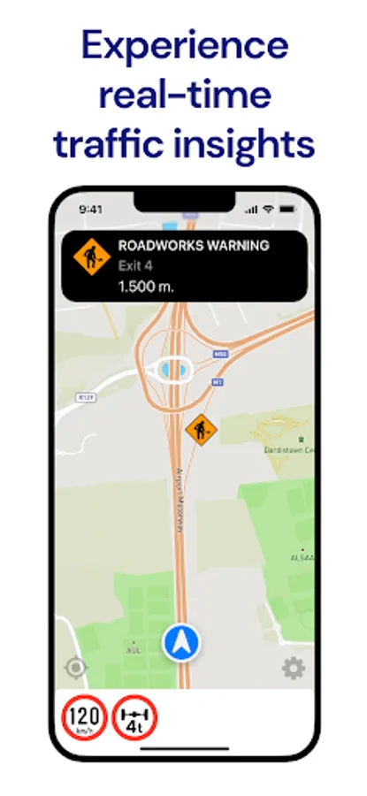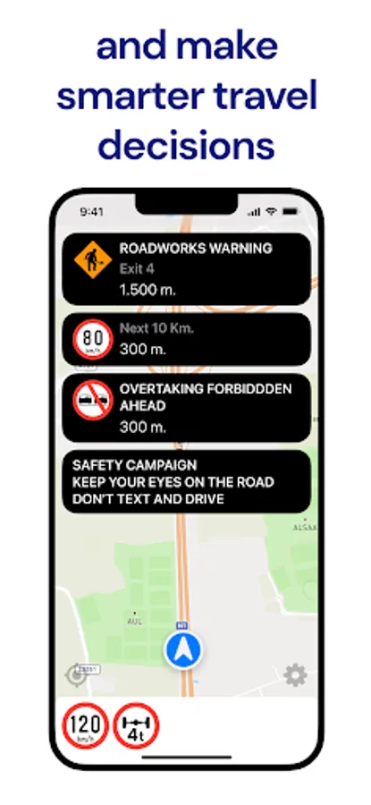 With Kapsch TrafficAssist, you'll have a comprehensive driving screen at your fingertips. It seamlessly combines a map-based display with real-time notifications and signage, ensuring you stay updated with relevant information while on the road. Our app utilizes location, travel direction, speed, and area of interest to filter and display traffic messages and events relevant for you.