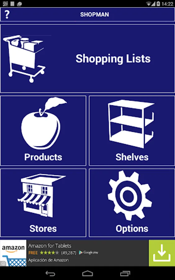 Shopping List Manager (Shopman) is a simple yet comprehensive app to allow you to quickly and easily keep your shopping lists on your phone. Indeed, it has been custom designed with phones in mind as it is these devices that you carry around with you! Shopman shopping list manager is broken down into five separate areas. Three of these are for the definition of stores, shelves and products. Then there is an options area and finally, once everything is defined, you can create your individual shopping lists. There is one shopping list per store and as stores are unlimited, you can have as many shopping lists as you wish. Stores can be anything you like such as "Sainsbury's" or "Sainsbury''s Weekly", "Sainsbury''s Monthly", etc. if you prefer.