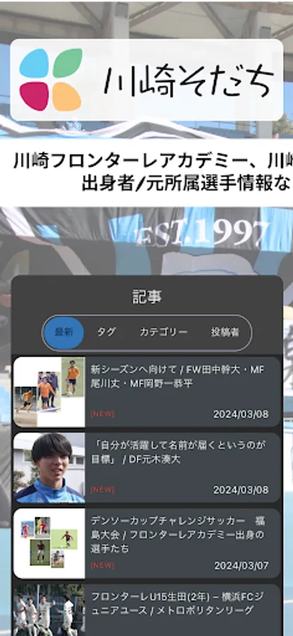 We will deliver information on Kawasaki Frontale Academy, Kawasaki Brave Thunders Academy, alumni players, etc.
