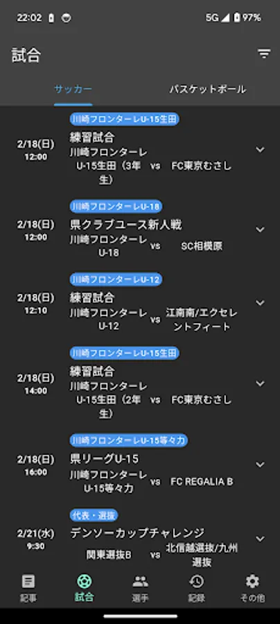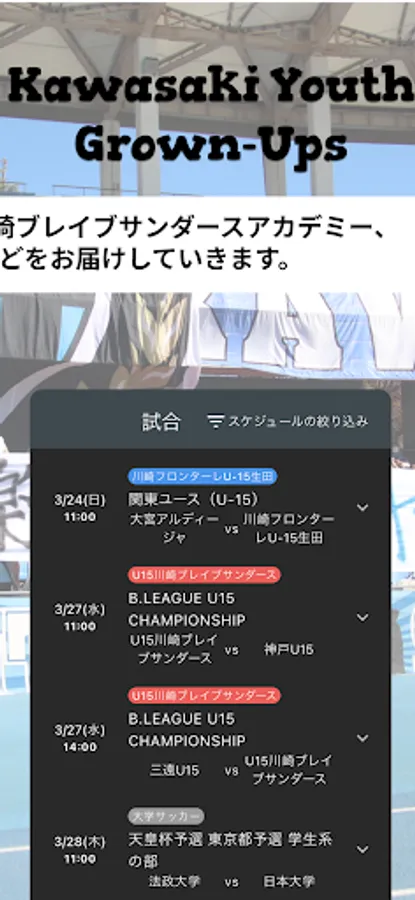 ・We will post match information for the categories covered by Kawasaki Sodachi.