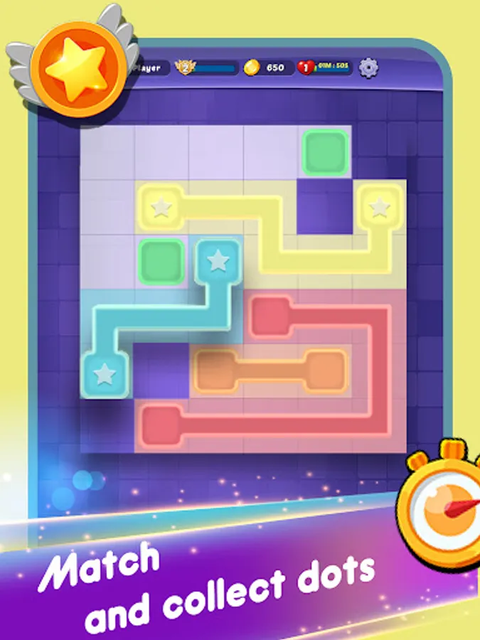 đ Easy to play; swipe your finger and connect the matched colours two dots.