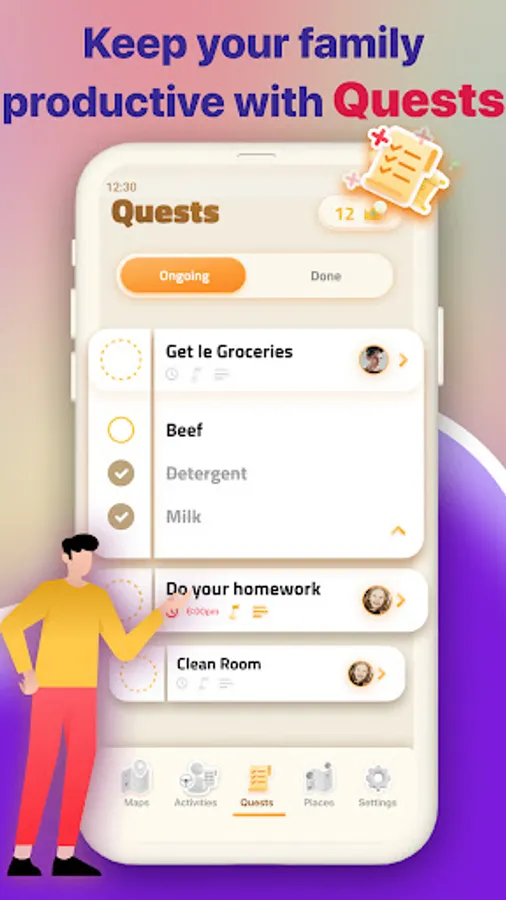 Assign tasks (we refer to them as "quests") to your family members, complete with steps, due dates, locations, and notes. Keep track of progress with a checklist and reward points for completed tasks. This feature is excellent for families who want to stay organized and get things done.