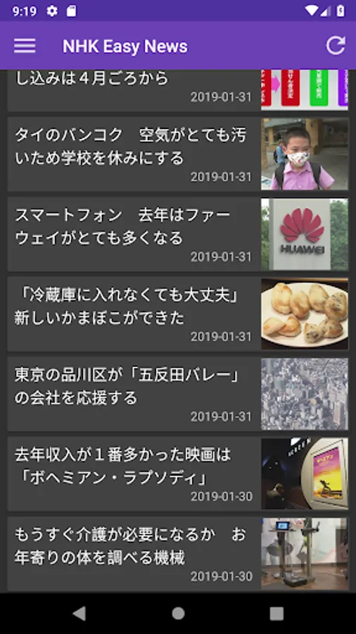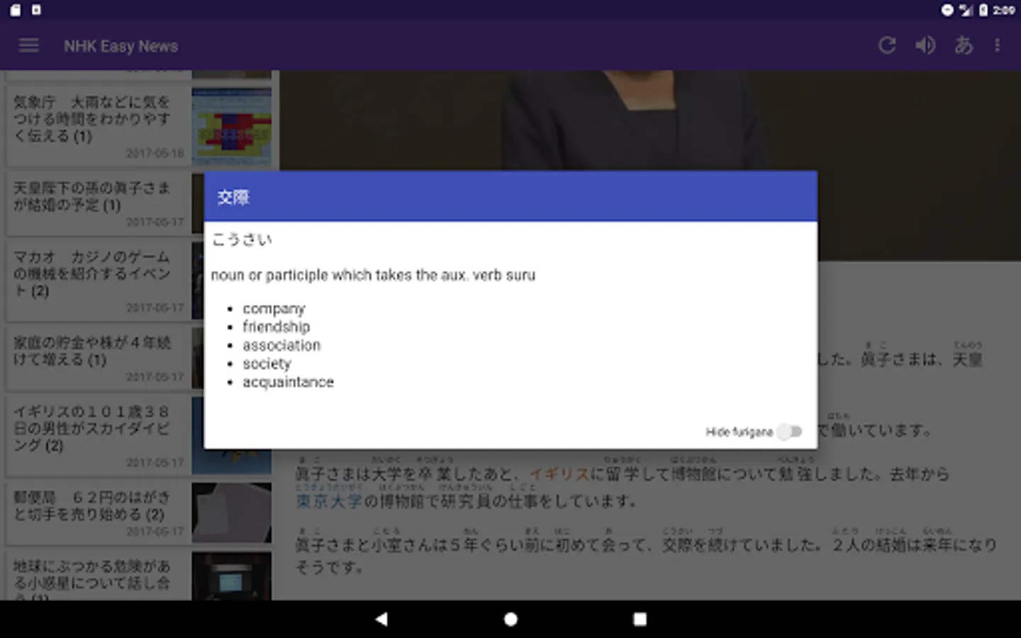 Sync for NHK Easy News is a free and simple app for reading Japanese news articles from NHK News Web Easy. The articles are a great resource for learning upper-beginner to intermediate level Japanese using real-world content.