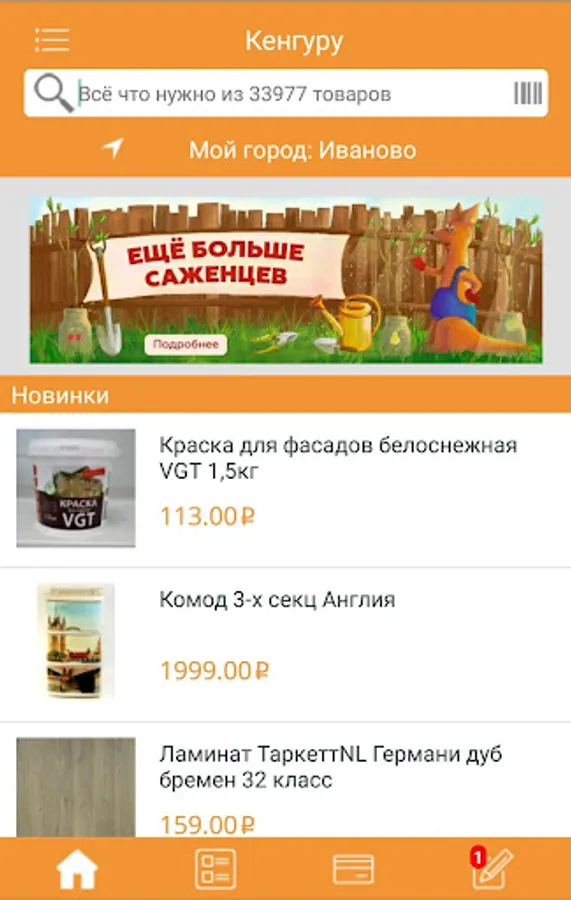 of "Kangaroo" The mobile app gives you full access to information about all the products and stores "Kangaroo" in any place and at any time! With our app you can: