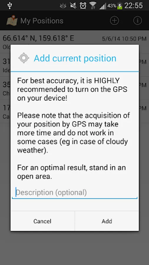 More informations and FAQ: http://kevinvuilleumier.net/android/mes-positions/ (french only)