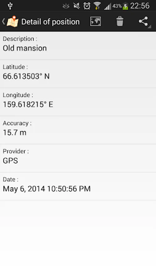 You can later access to all information regarding registration: date, geographic coordinates, accuracy, provider...