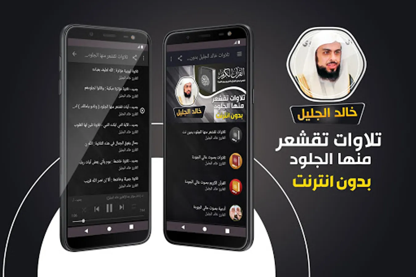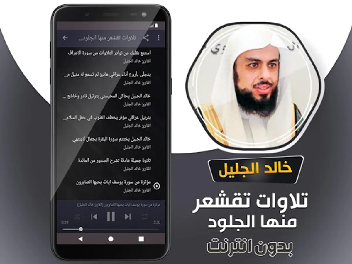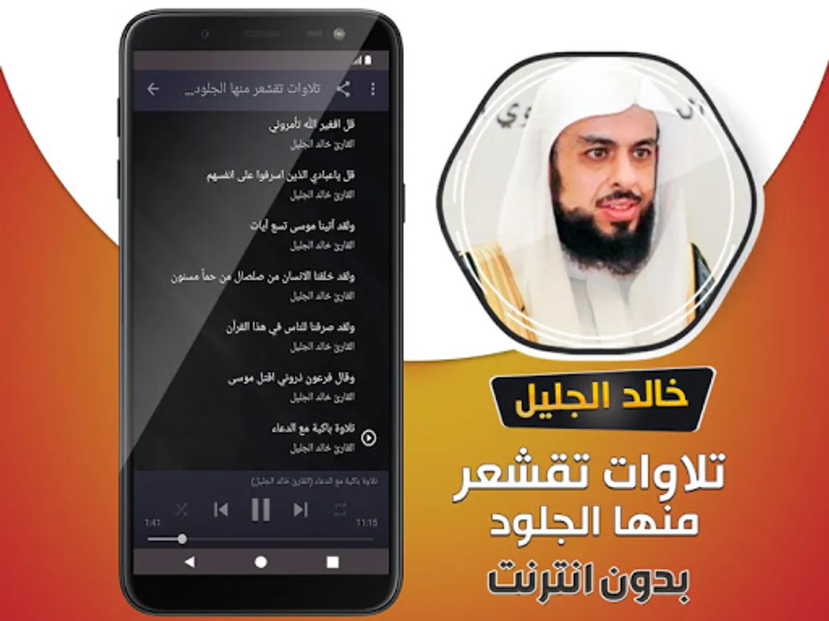 🔹 The Khaled Al-Jalil application contains recitations that shudder through the skins, listening to the surahs of the Qur’an without internet and it is characterized by this application for free recitation of the Qur’an.