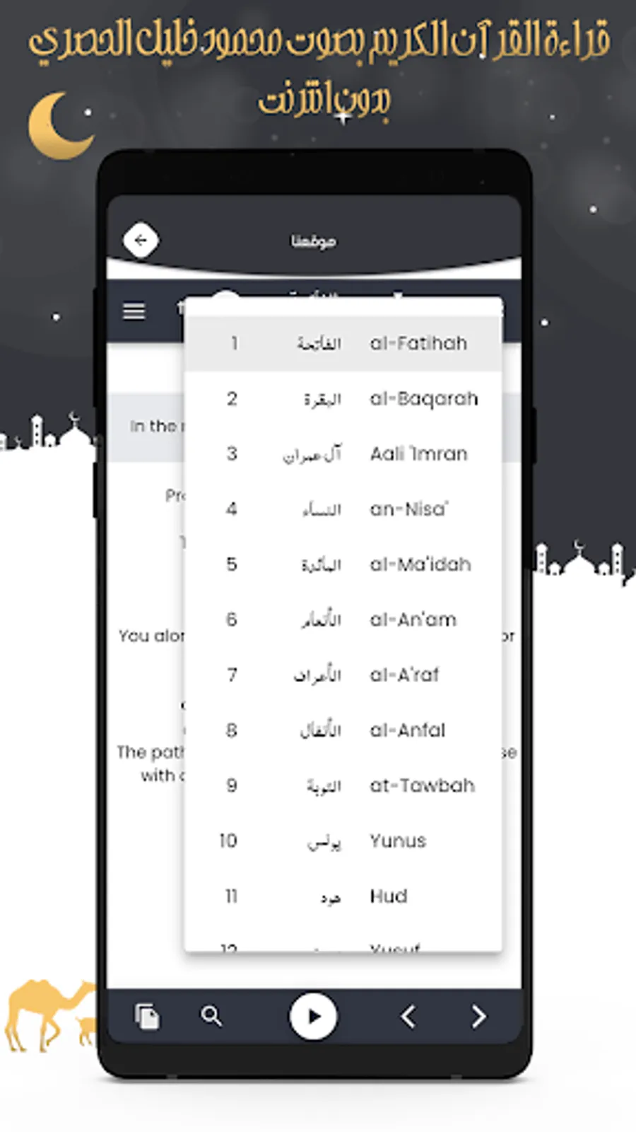 The application of the Noble Qur’an with the voice of Mahmoud Khalil Al-Hosari allows you to hear all the surahs of the Noble Qur’an through your mobile phone or tablet with ease and ease through one program that contains all the surahs of the Noble Qur’an. Store for Android phones. And you can download the application of the Noble Qur’an with the voice of Mahmoud Khalil Al-Hosari with ease so that you can enjoy reciting the Holy Qur’an with the voice of Sheikh Mahmoud Khalil Al-Hosary wherever you want.