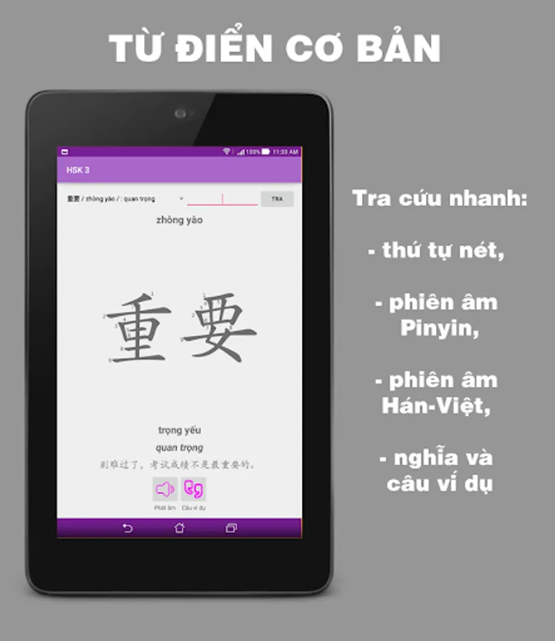 - To use the example sentence reads, phones need to install Chinese language voice. Google recently upgraded due to this feature, there are some machines are not compatible so no sound will play the examples section.
