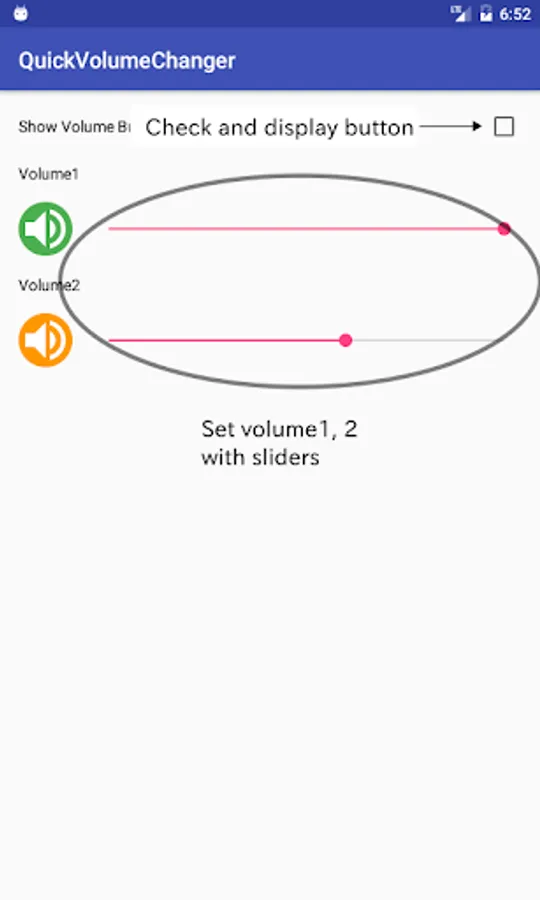 · Check "Show Volume Button" checkbox and "Quick Volume Changer" button is displayed in the center of the screen.