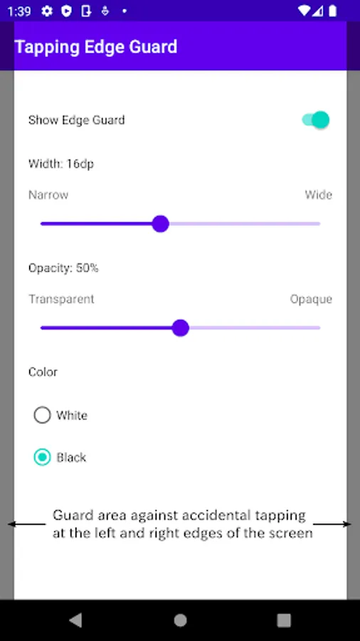 This app prevents accidental tapping by creating an area on the edges of the screen that does not respond to tapping.