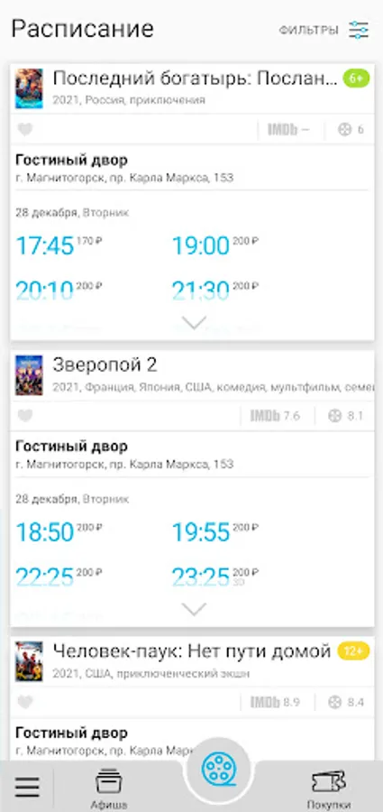The new web app cinemas «SkyCinema» (Magnitogorsk: "Gostiny Dvor", "Continent", "Contemporary", Ozersk, "Festival"), released in conjunction with the service "Kinobilety.rf", allows you to check the schedule and book movie tickets from mobile devices.