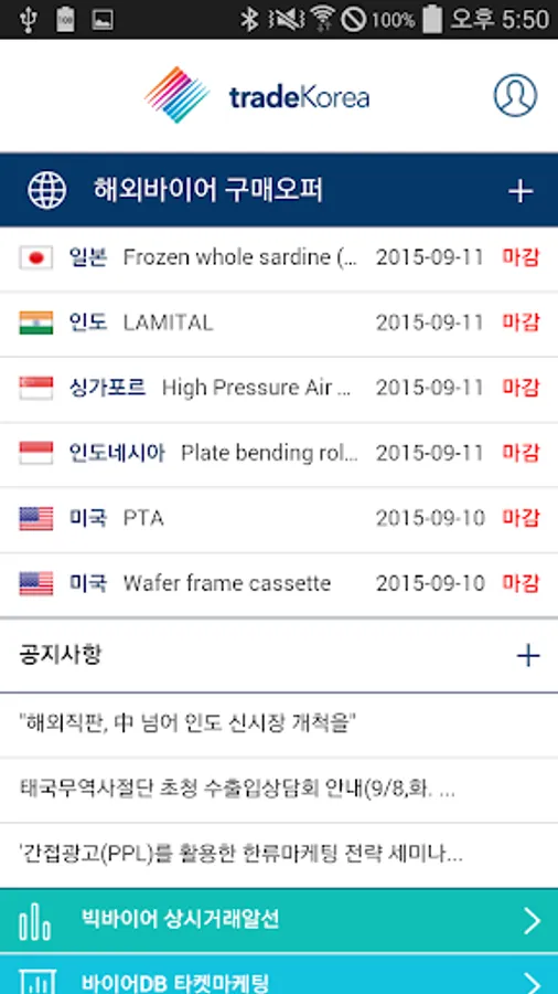 tradeKorea.com is a global B2B e-Marketplace for trades between exporters and importers from all around the world. Our tradeKorea.com app allows you to access the world’s leading platform for global whole sales trade, wherever you are. You can find over 500,000 products from Korea and other countries of the world, including Cosmetics, Electronics, Machines, Medical Products, and more. You can find business opportunities here in your app. tradeKorea.com is operated by the Korea International Trade Association(KITA), the largest economic organization in Korea with more than 70,000 companies as members.