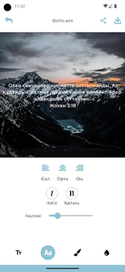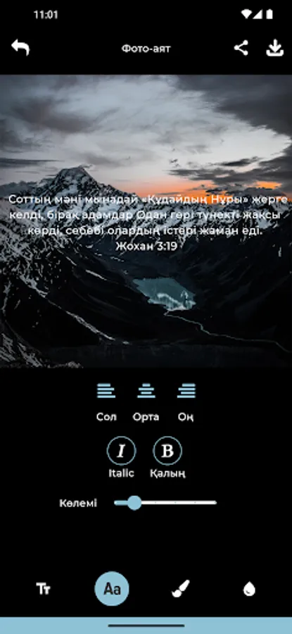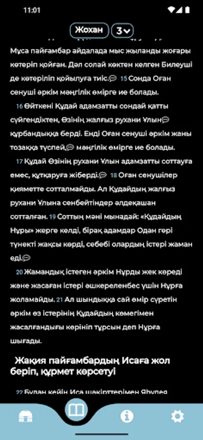 The Kieli kitap (Holy Book) is God’s Word, mankind’s exceedingly precious heritage. In the whole world, believers in the Most High God revere its Holy Writings and regard them as His sacred revelations. In the course of history, the Bible has directly or through other books exerted great influence on literature and science, our laws, customs and traditions. We are sincerely grateful to the Creator Lord that He has given us the privilege to read His Holy Scriptures in our mother tongues and become closely familiar with its beneficial content. Through the Holy Scriptures we learn about the character of the Most High, about the vast universe that He created, and about His merciful intentions for mankind. Those who put their faith in Isa the Messiah, who was sent to the earth by the Most High, and live according to His will as it is laid out in His Holy Book, become spiritually new persons. Their character and behaviour are being cleansed from evil traits and thoughts. Such people are a great asset for their country and nation. This app also includes the following study tools: - Glossary (explanation) of important Biblical terms, - Concordance (collection of phrases from about 30,000 Bible verses under 3,540 head words and phrases), - 15 chronological and topical tables. May God Almighty bless our whole nation and guide us to thoroughly study His Holy Book and receive its beneficial teaching! Amen. On the internet, the Kazakh Bible can be found on this website: https://kkitap.net/?lang=en
