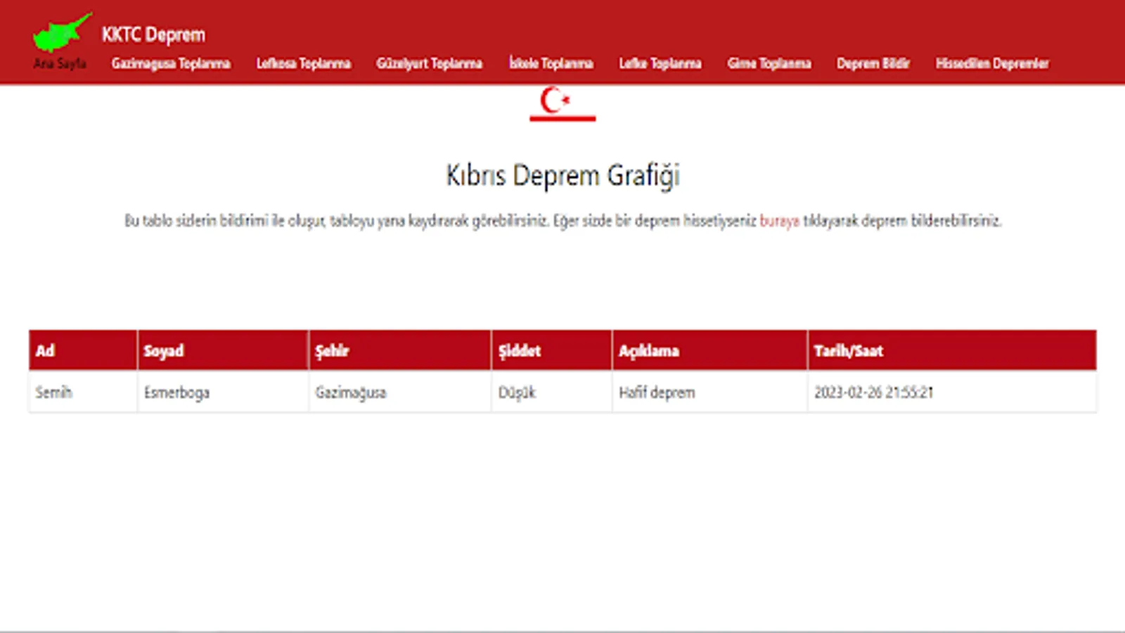 This application was created to share information about earthquakes in Turkey and Cyprus.