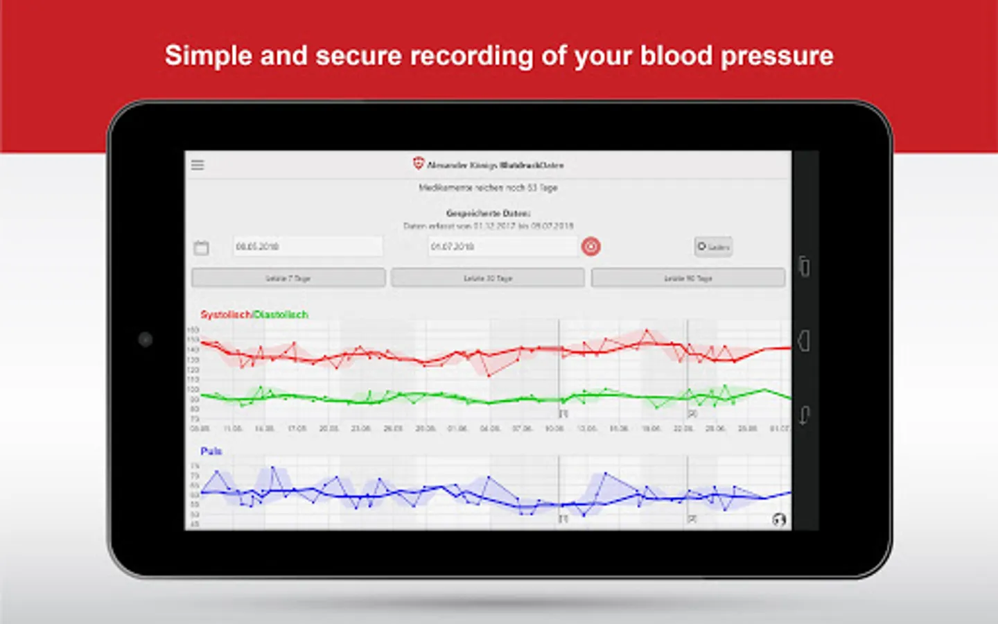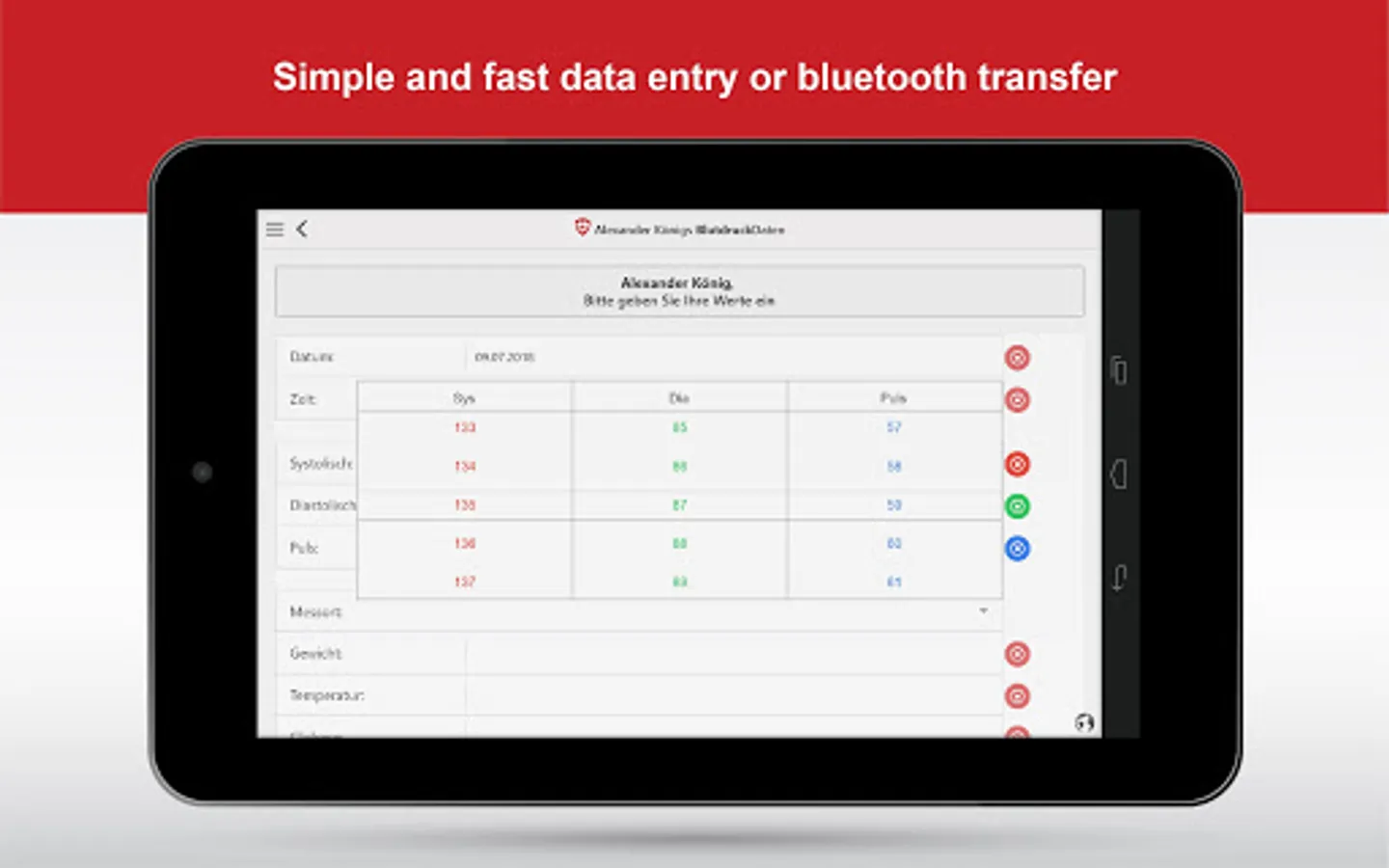 * Multi device usage with synchronization to see your stored blood pressure on the go