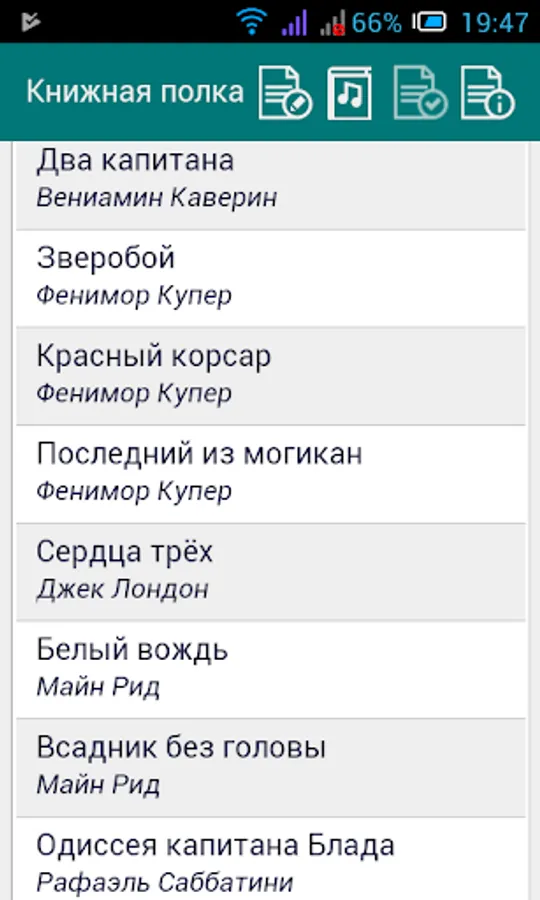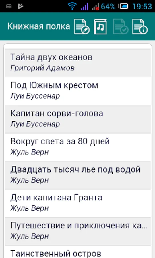 Grigory Adamov, Louis Bussenard, Jules Verne, Daniel Defoe, Alexander Dumas, Benjamin Kaverin, Fenimore Cooper, Jack London, Mein Reed, Rafael Sabbatini, Emilio Salgari, Jonathan Swift, Robert Stephenson, Mark Twain, Alexey Tolstoy, Herbert Wells.