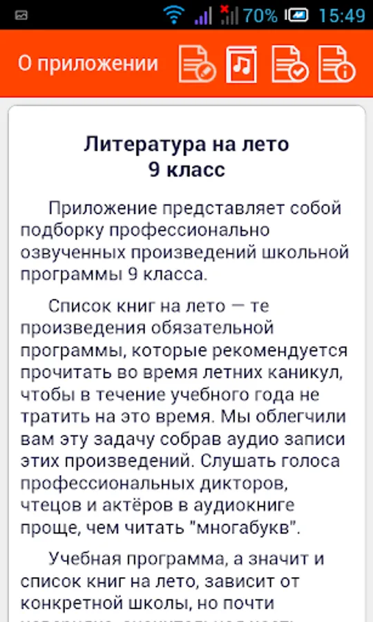 List of books for the summer - these are the works of a mandatory program that is recommended to read during the summer holidays, in order to not spend time on it during the school year. We facilitate you the task of collecting audio recordings of these works. Listen to the voices of professional speakers, readers and actors in the audio book easier to read than "mnogabukv".