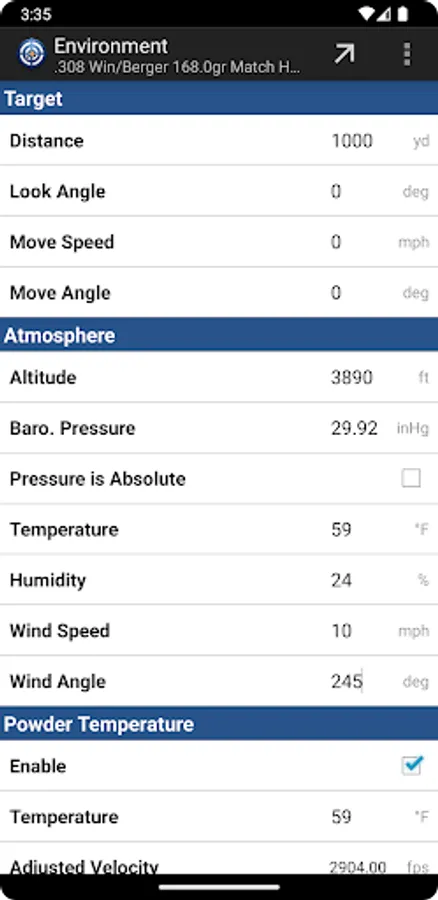* Zero-atmosphere support. This will auto-account for changes to your zero when shooting in a different atmosphere