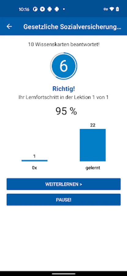Regardless of whether you learn alone or in competition with other colleagues - the learning progress is always saved and can be viewed at any time. The app is also a great companion in everyday working life as a quick and mobile reference work.
