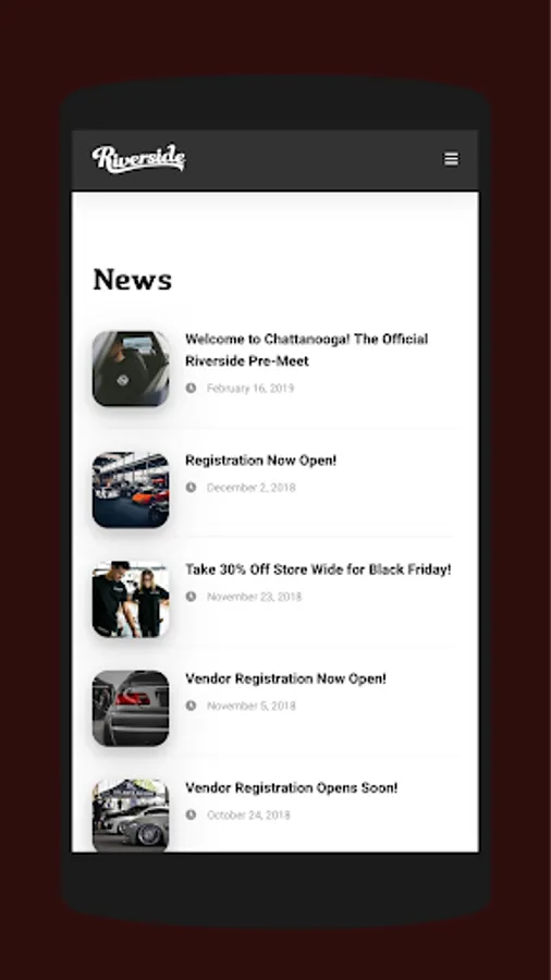 Register your vehicle for Riverside Spring Meet directly from the app! You can also edit your registration and add more photos. Receive push notifications about the show!