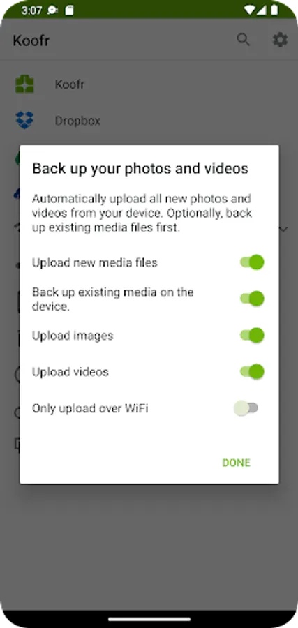 Koofr for Android gives you additional options to easily backup photos and videos the moment you take them. No more worrying about losing your phone or sending photos by email to your computer. Have your files accessible anywhere, look at the photos you shot on your phone while browsing the internet. It's all about simplicity.