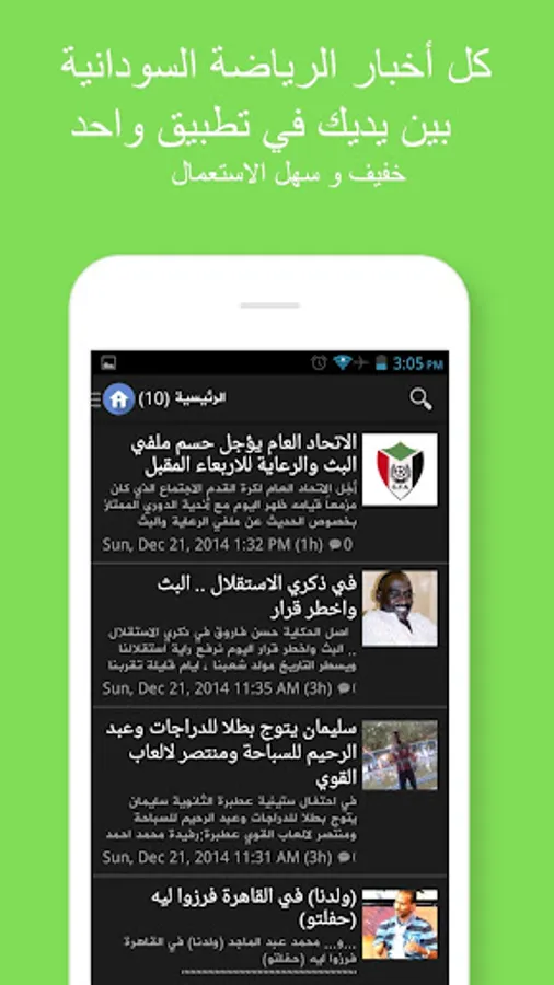 Application oasis gathering and unite the various forms of sports and athletes shades of Sudanese and combines sporting their colors and their orientation and melt the affiliations of their clubs and pour the diverse visions of the diversity of cultures and ideas and goals renounce fanaticism and nervousness among athletes. The unification of the national discipline in promoting national teams and teams that represent the dear homeland.