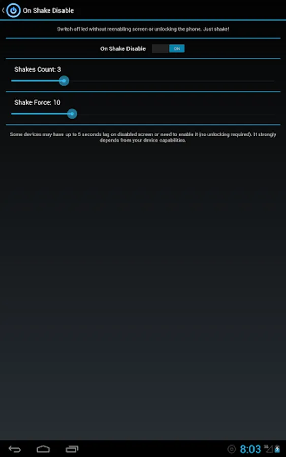 - Just Shake, without re-enabling screen or unlocking the phone! (Unlimited Version)