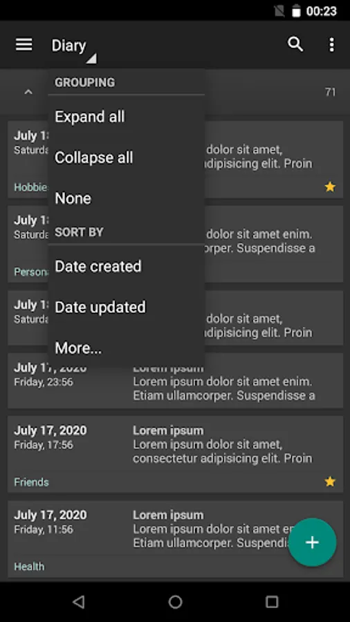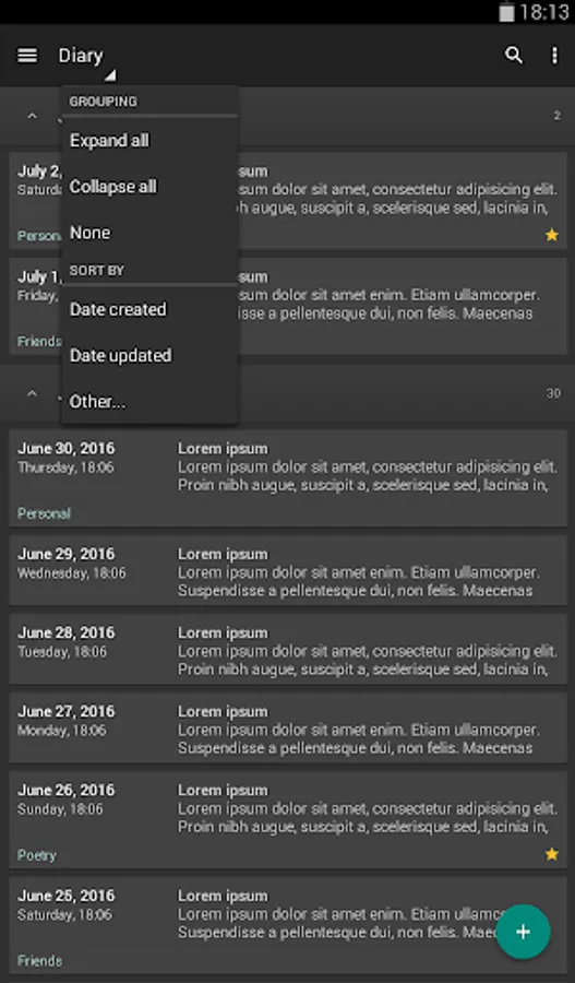 - Sort entries by date created, date updated, title and category