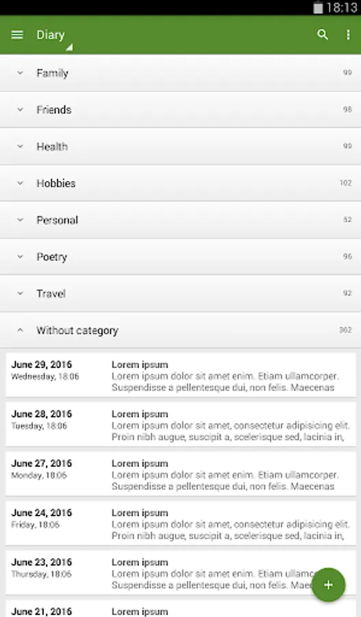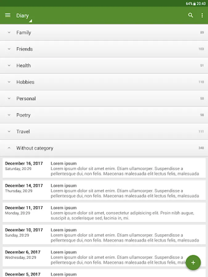 - Organize entries by categories