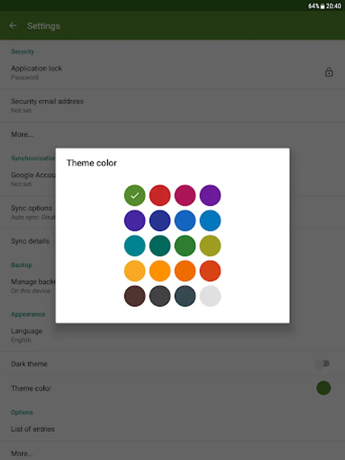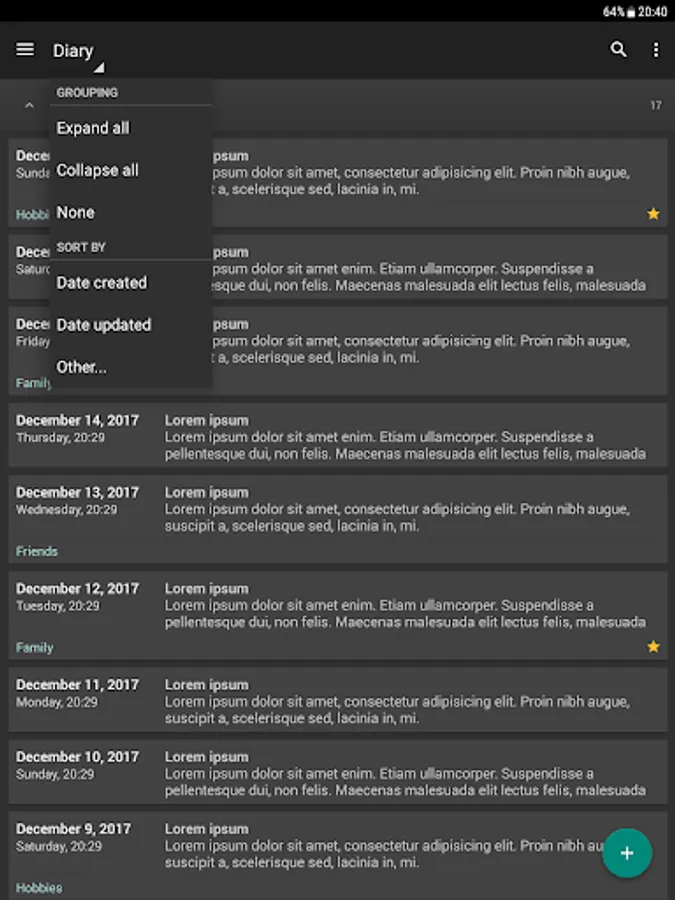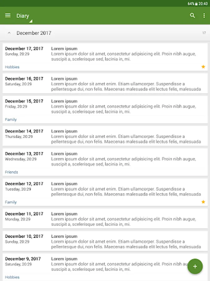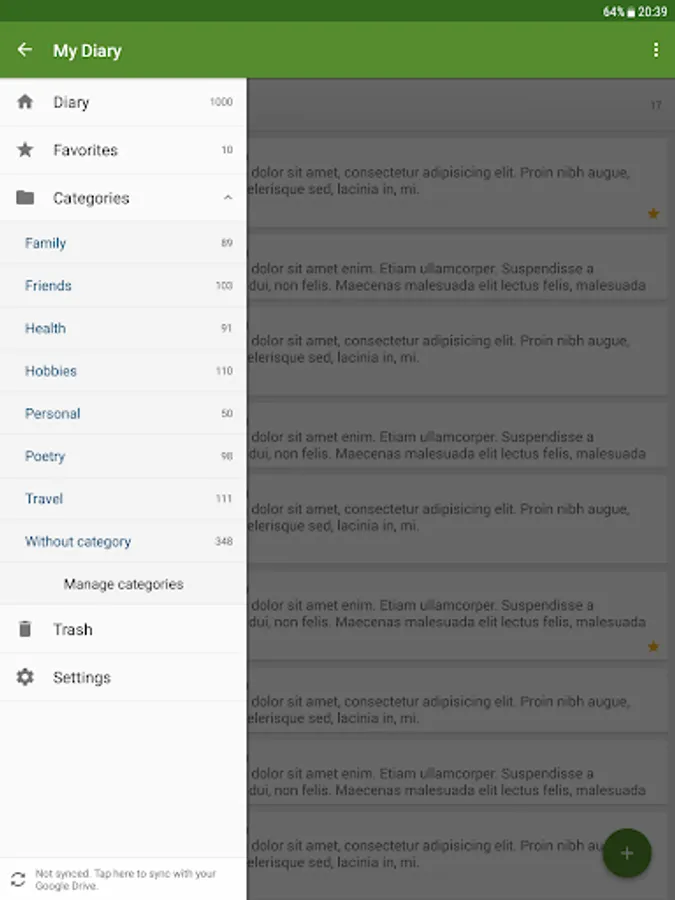 - Sync your entries via Google Drive between all Android devices you use