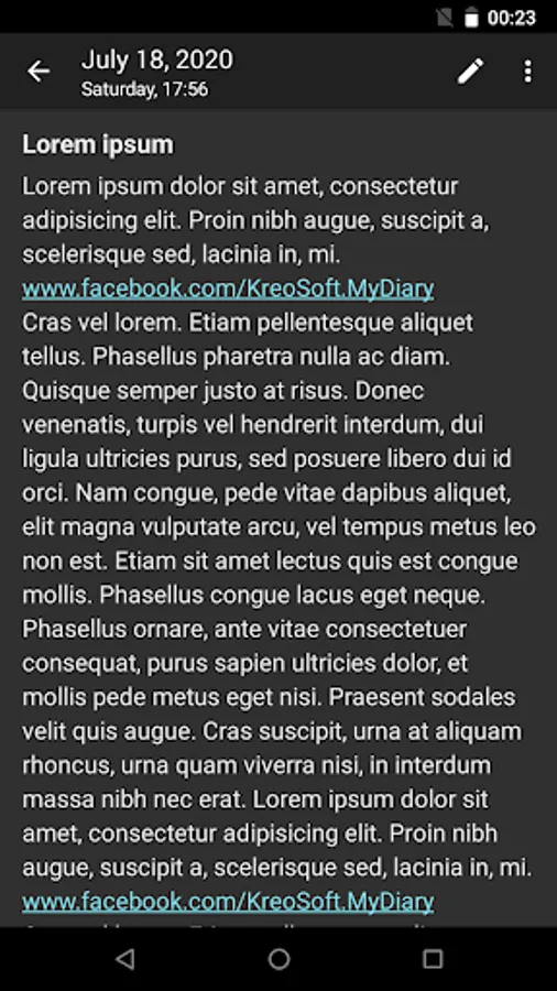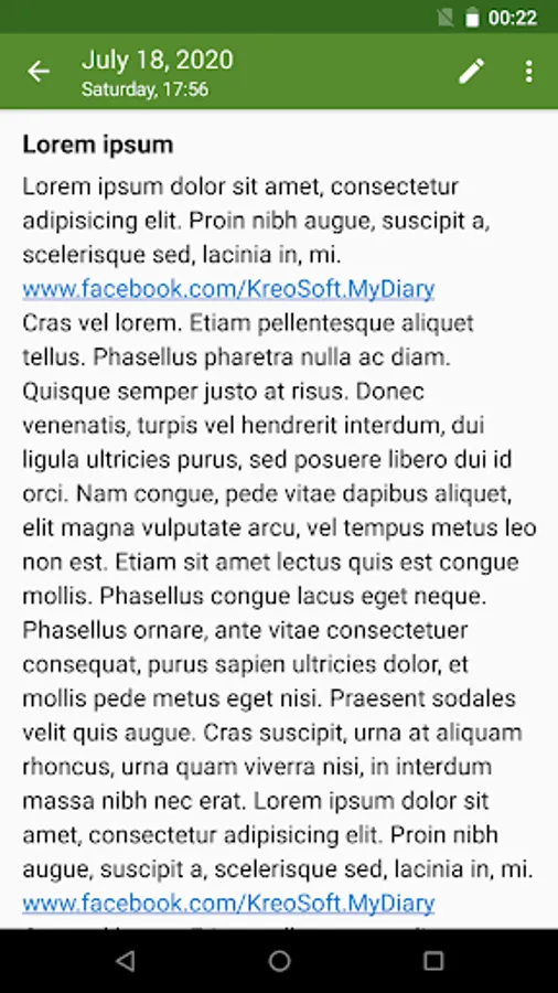 My Diary is an easy-to-use, intuitive, fast, elegant and secure app. Write down your own thoughts, memories, secrets, life events, notes or other confidential information. The app can be used as a diary, journal, notepad or notebook.
