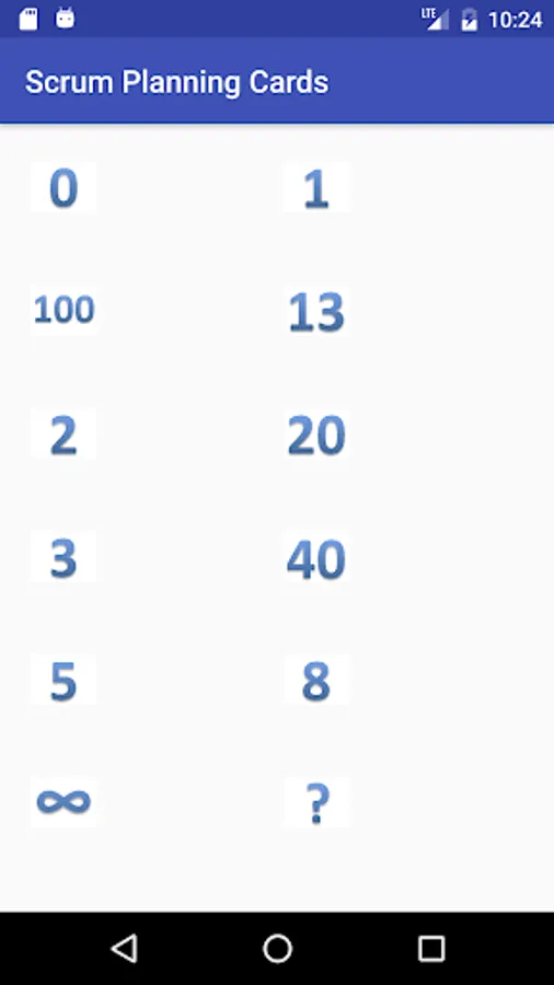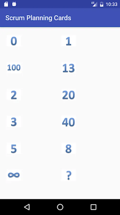 Scrum planning cards.