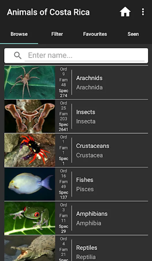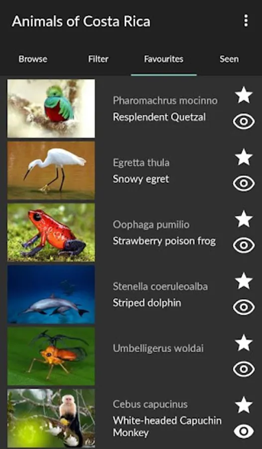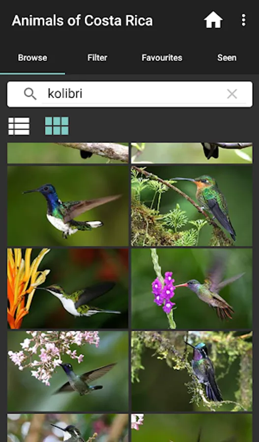 This app is the first comprehensive field guide of animals of Costa Rica containing more than 10,000 pictures of more than 6,600 common or spectacular species from mammals, reptiles, birds, amphibians as well as freshwater and marine fish to insects and spiders and many more.