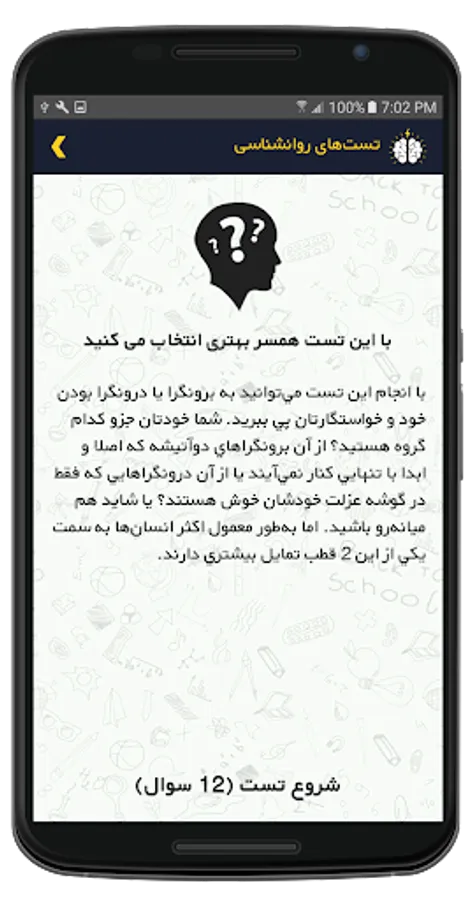 Psychological tests include more than 50 psychological tests from the world's top psychologists. By downloading this banner, you will receive a complete collection of the most authoritative and top-notch tests of personality and psychology. Maybe you're wondering, but this app is completely free!
