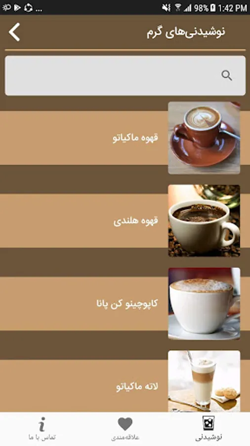 - Types of tea, coffee
