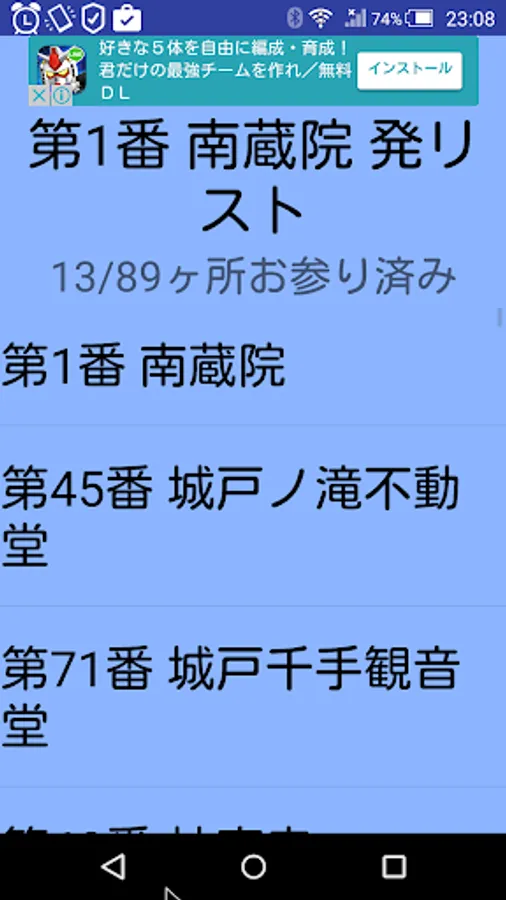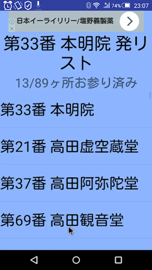 今までの「お遍路なび」と同様に札所の一覧や地図から目的の札所の情報を見たりすることが出来るようになっています。