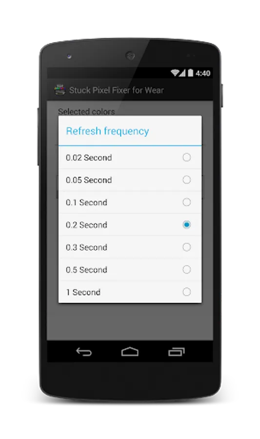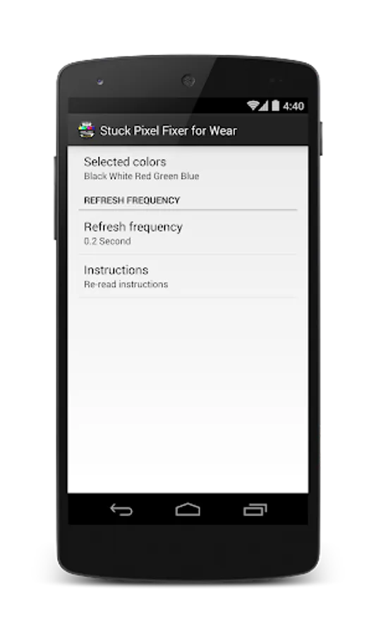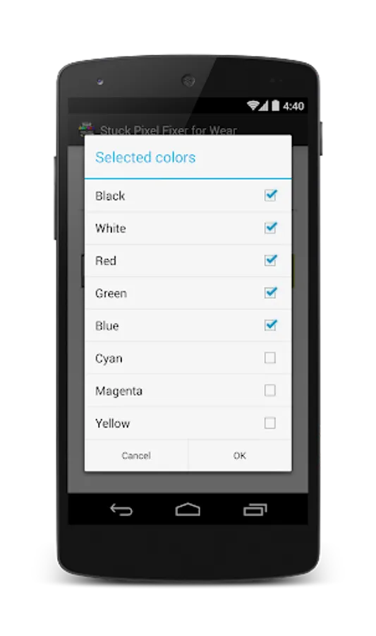 TIP: Selecting only one color can be used to diagnose the screen for dead/defective pixels.