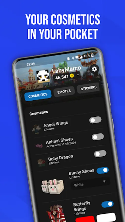 With the LabyMod you can customize your ingame character on your desktop client right from your mobile device. You can even get your daily streak reward or shop for new cosmetics from within the app.