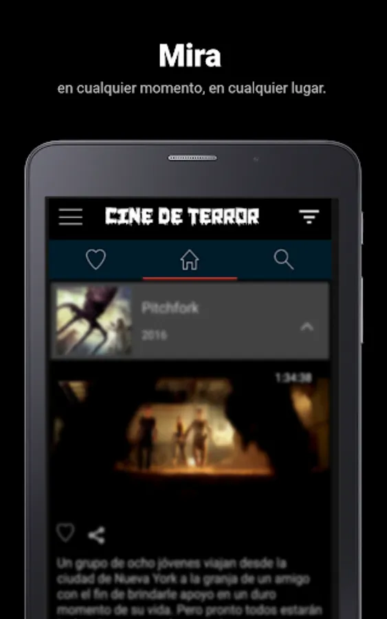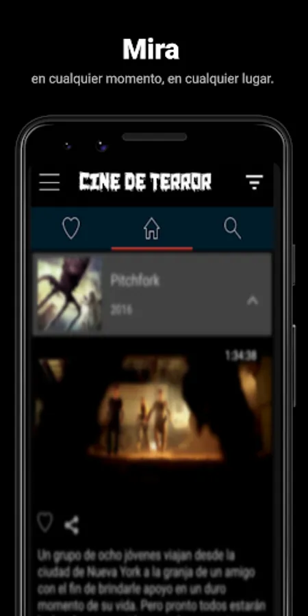 Now watch free movies, wherever you are . We offer you the best free horror movies in Spanish in streaming, for evenings with your partner or friends, with the family or alone in a dark room. You will be able to enjoy classic and quality horror movies in streaming. It contains various subgenres: paranormal, houses, apocalypse, gore, epidemics, viruses, zombie, nuclear, slasher, demons, chases, serial killers, etc and very frequent content updates for you to pass fear .