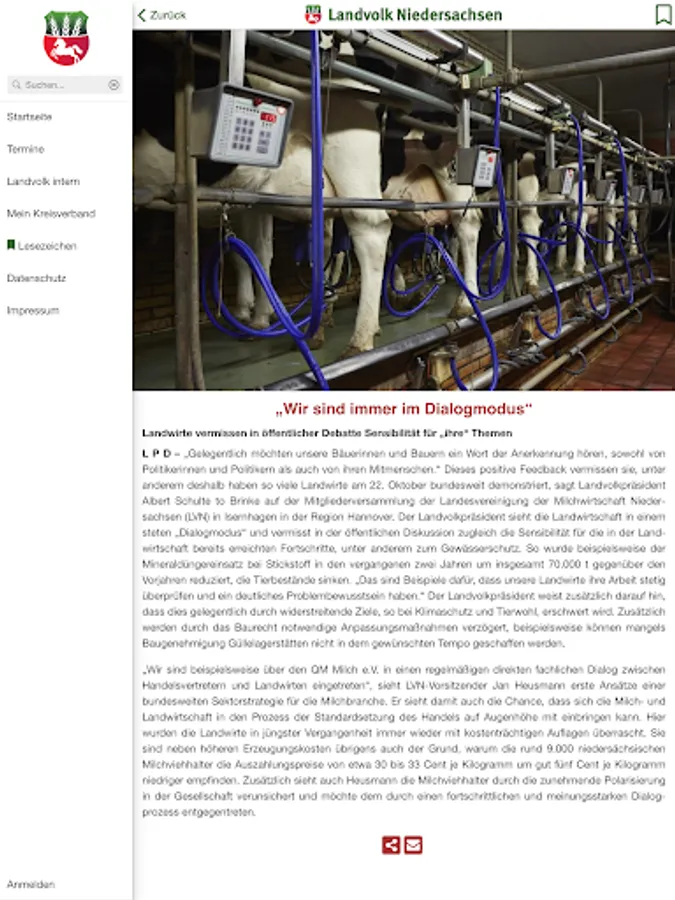 The Landvolk app keeps you up to date on agriculture and rural areas in Lower Saxony. Country folk members receive exclusive access to subject information.