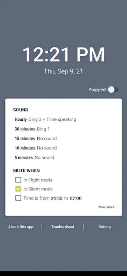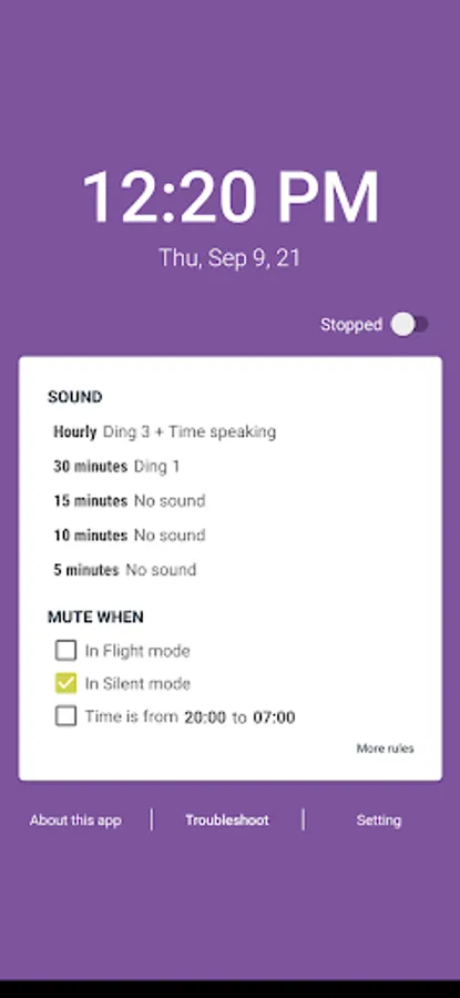 The option to speak the current time is also support. Speak out loud the time so you don't need to open your phone, safer while driving.