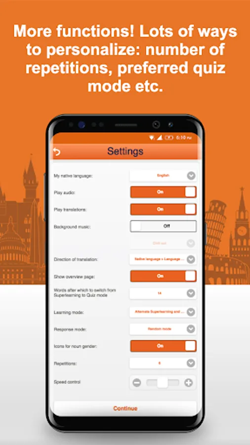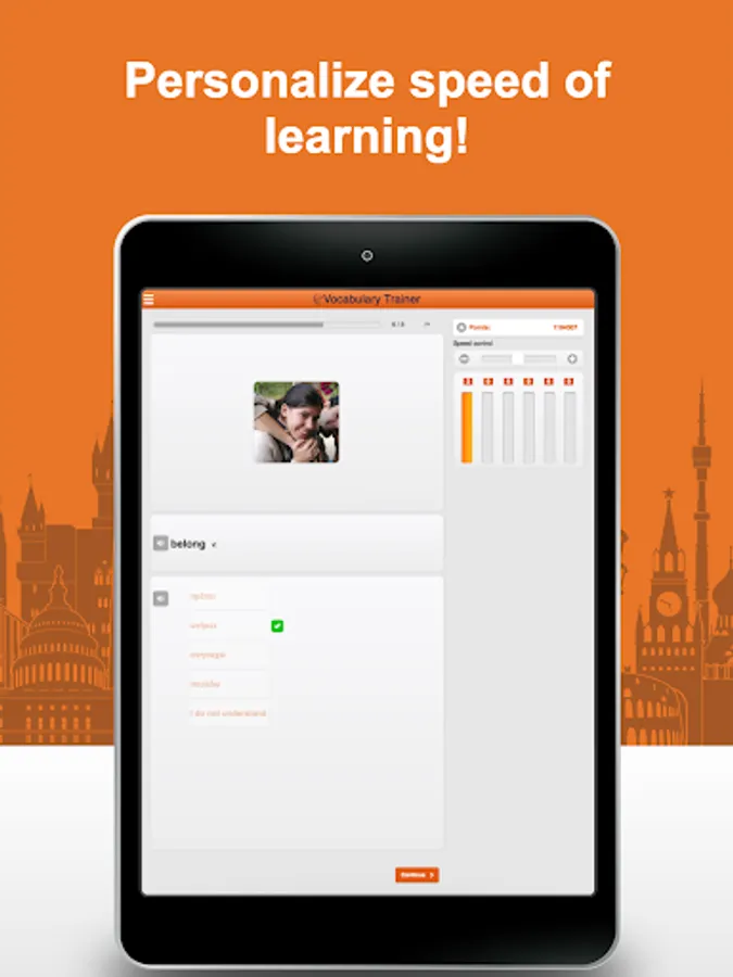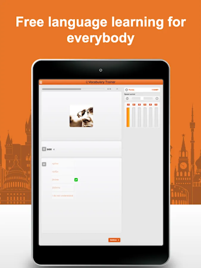 ► Accelerated Learning Methodology: Research in the field of vocabulary learning showed that spaced repetition language training gives the best results for memorization in language lessons. Plus optional relaxation music can increase student memory capacity (superlearning).