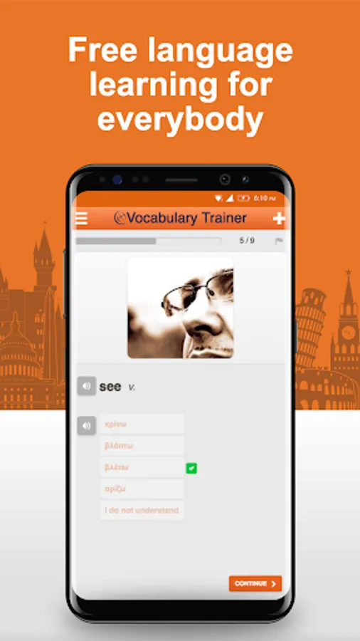 • 100% Free Greek lessons for beginners, advanced learners, adults and kids. Build a solid vocabulary in just 10 mins per day. Pioneering sleep learning function designed with leading researchers. Learn the most frequent Greek words and travel phrases quickly, before your holidays. Proven methodology for accelerated and stress-free learning of Greek. Over 10.000 words and phrases with images and quality audio. More than any other app! Learn vocabulary while driving, running or doing housework in listening-only mode.